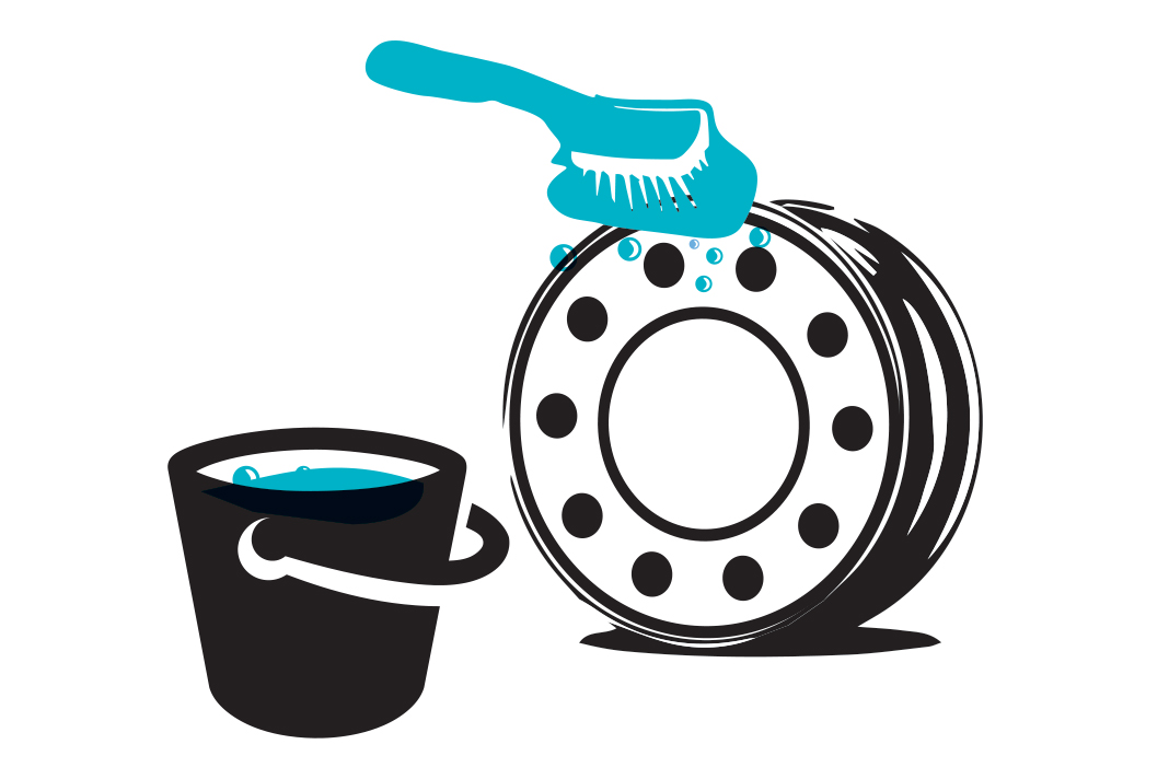Mélanger de l’eau avec un détergent doux ou utiliser notre produit spécifique Dura-Bright® Wheel Wash non dilué (agiter avant utilisation).